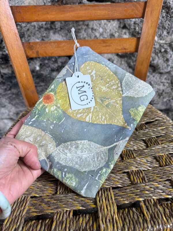Leaves were locally foraged to produce the prints. I grow the flowers myself in my garden. It does take time to create natural prints as first, the lining fabric needs to be scoured, mordanted and then processed. The leather needs to be pretreated before printing. Then, later on, the fabric is washed to remove any excess dye that is produced during the printing process. This process can take up to 3 days due to the preparation of the final product stages. All these steps are done locally in London, where I am currently based.