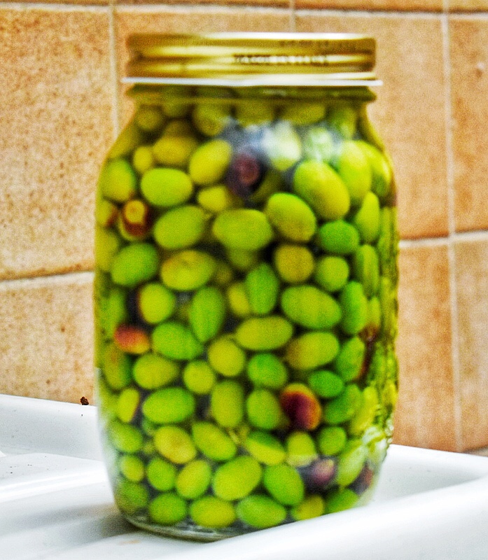 Curing olives in brine